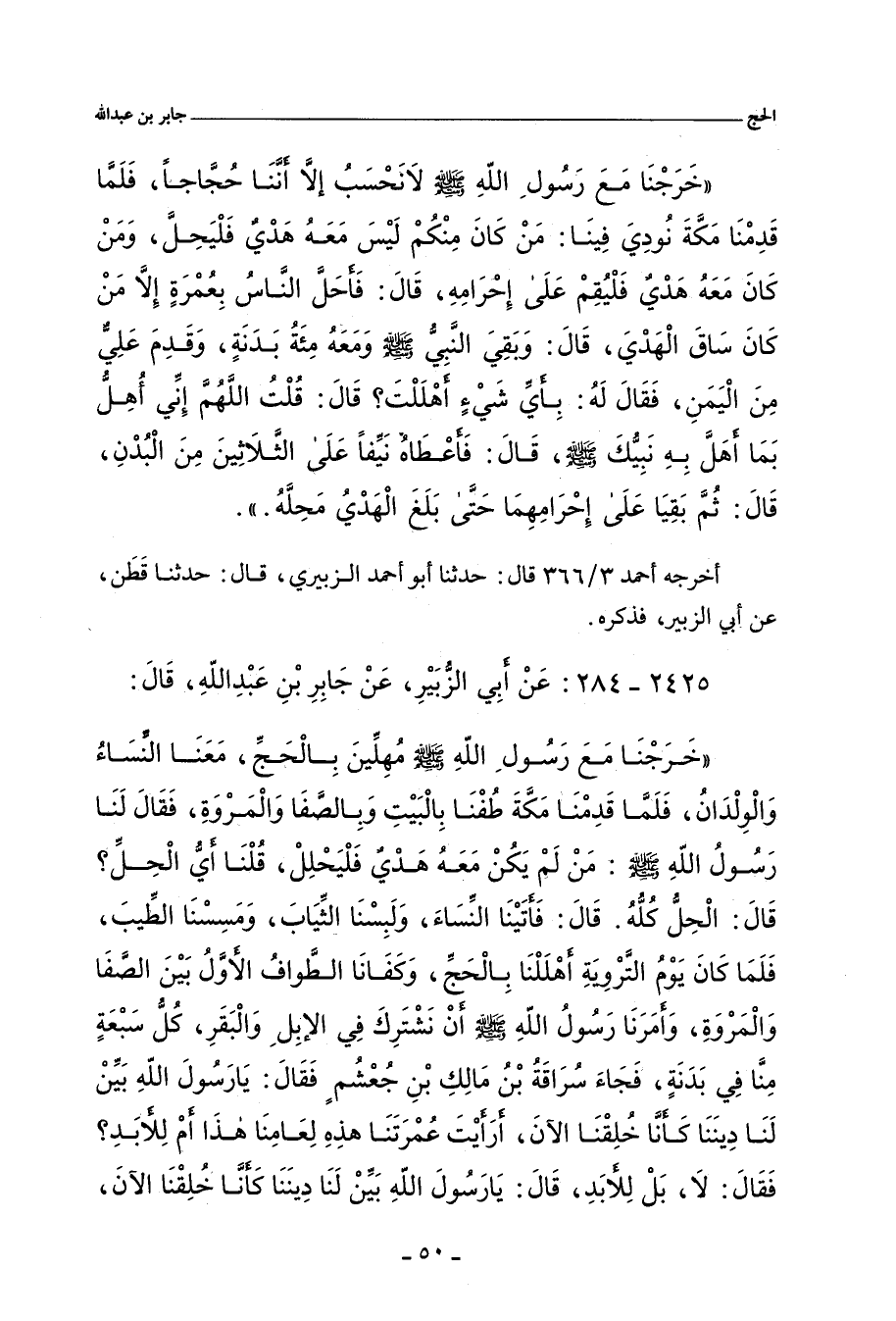 ٢٤٢٥ - عَنْ أَبِي الزُّبَيْرِ، عَنْ جَابِرِ بْنِ عَبْدِ اللهِ، قَالَ: