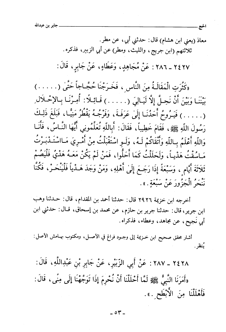 ٢٤٢٧ - عَنْ مُجَاهِدٍ، وَعَطَاءٍ، عَنْ جَابِرِ بْنِ عَبْدِ اللهِ، قَالَ: