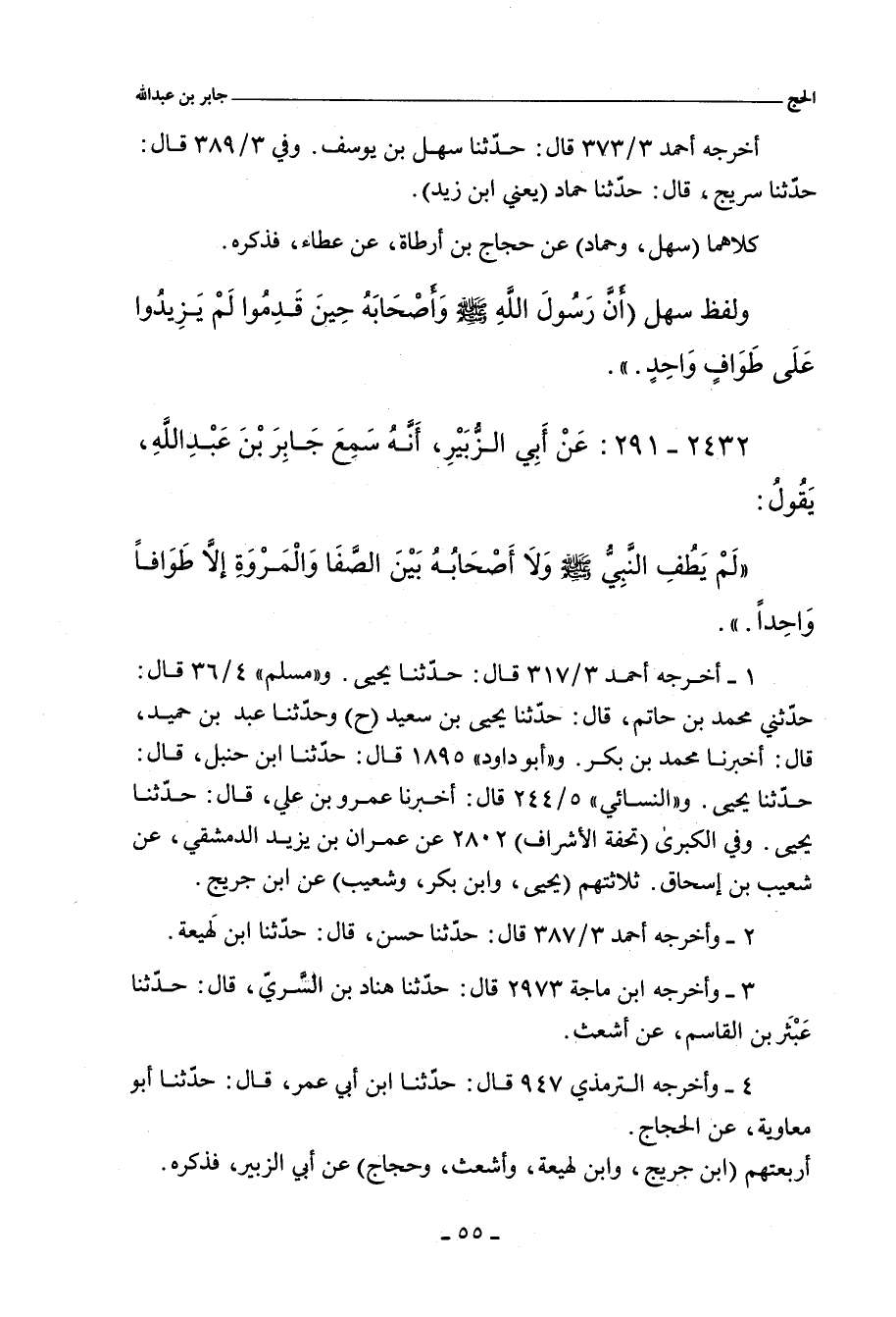 أخرجه أحمد ٣/ ٣١٧ (١٤٤٦٧) قال: حدَّثنا يَحيى بن سَعِيد، عن ابن جُرَيْج. وفي ٣/ ٣٨٧ (١٥٢٢٢) قال: حدَّثنا حَسَن، حدَّثنا ابن لَهِيعَة. و"مسلم" ٤/ ٣٦ (٢٩١٤) قال: حدَّثني مُحَمد ابن حاتم، حدَّثنا يَحيى بن سَعِيد، عن ابن جُرَيْج (ح) وحدَّثنا عَبْد بن حُمَيْد، أخبرنا مُحَمد بن بَكْر، أخبرنا ابن جُرَيْج. و"أبو داود" ١٨٩٥ قال: حدَّثنا ابن حَنْبَل، حدَّثنا يَحيى، عن ابن جُرَيْج. و"ابن ماجة" ٢٩٧٣ قال: حدَّثنا هَنَّاد بن السَّرِي، حدَّثنا عَبْثَر بن القاسم، عن أَشْعَث. والتِّرْمِذِيّ" ٩٤٧ قال: حدَّثنا ابن أَبي عُمَر، حدَّثنا أبو مُعَاوِيَة، عن الحَجَّاج. و"النَّسائي" ٥/ ٢٤٤، وفي "الكبرى" ٣٩٦٦ قال: أخبرنا عَمْرو بن علي، قال: حدَّثنا يَحيى، قال: أنبأنا ابن جُرَيْج. وفي "الكبرى" ٤١٦٢ قال: أخبرني عِمْرَان بن يَزِيد، قال: أخبرنا شُعَيْب، قال: أخبرني ابن جُرَيْج.