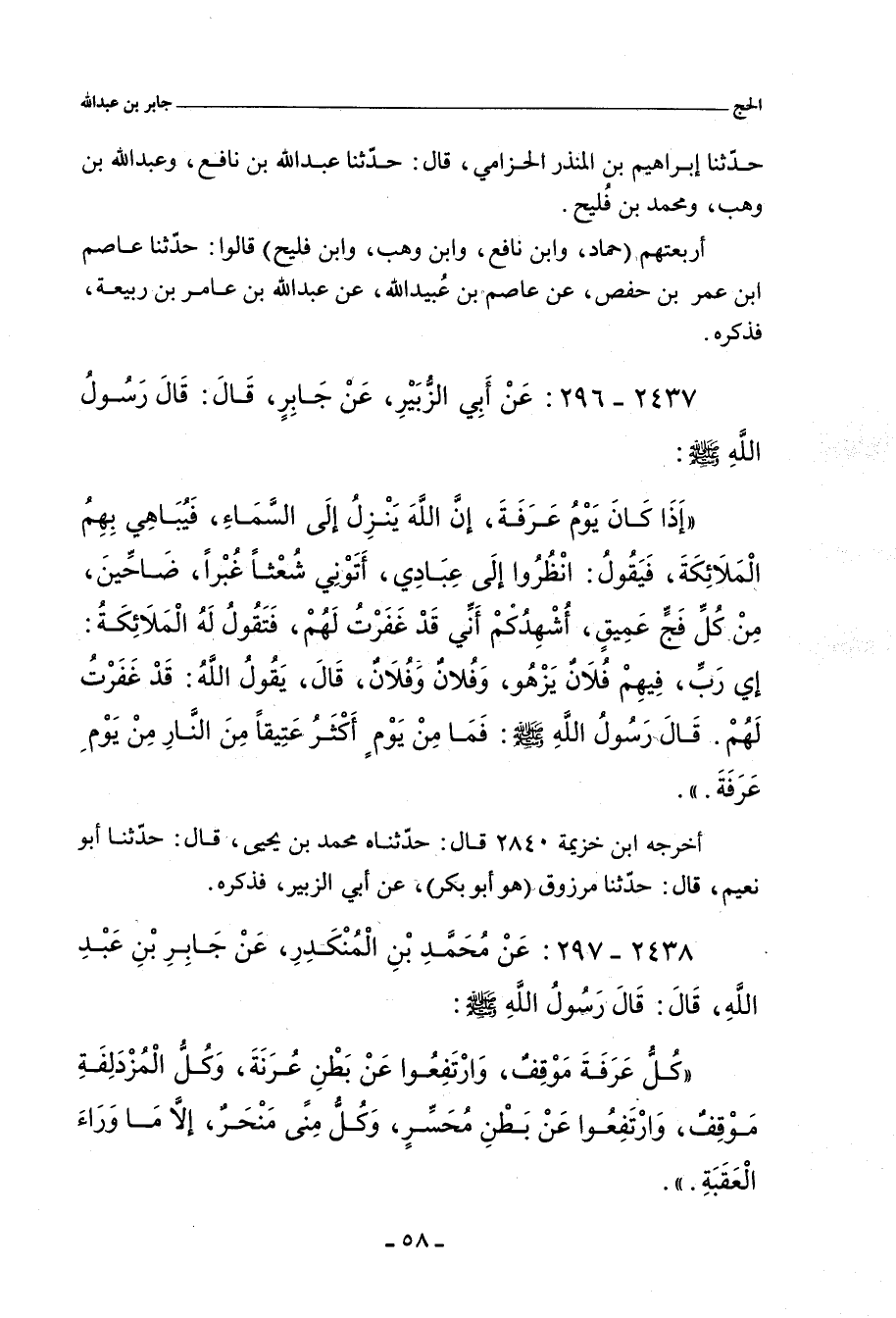 ٢٤٣٧ - عَنْ أَبِي الزُّبَيْرِ، عَنْ جَابِرٍ، قَالَ: قَالَ رَسُولُ اللهِ صلى الله عليه وسلم: