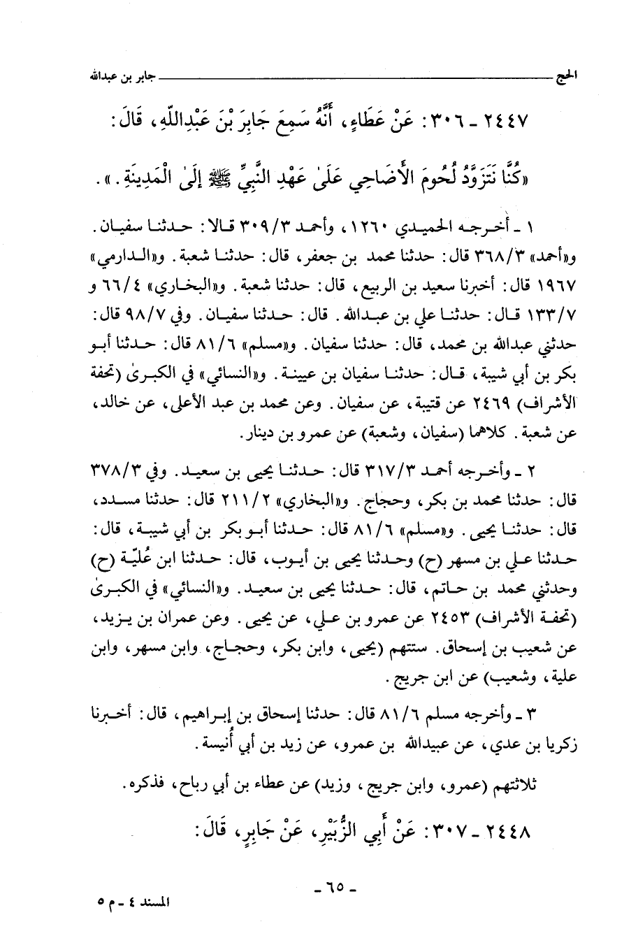 ٢٤٤٧ - عَنْ عَطَاءِ بْنِ أَبِي رَبَاحٍ، عَنْ جَابِرِ بْنِ عَبْدِ اللهِ، قَالَ: