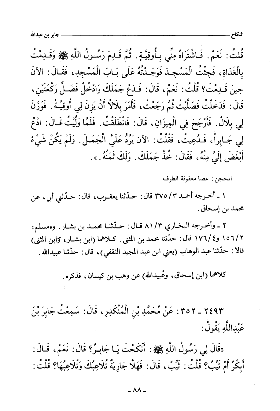 ٢٤٩٣ - عَنْ مُحَمَّدِ بْنِ الْمُنْكَدَرِ، قَالَ: سَمِعْتُ جَابِرَ بْنَ عَبْدِ اللهِ يَقُولُ: