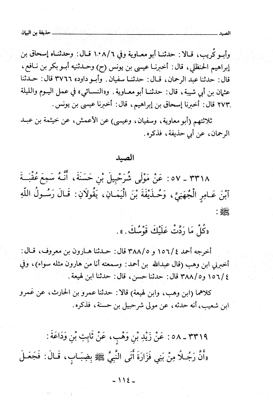 - عَقِب إسناد أَبي مُعَاوِيَة، عند أحمد، قال: حدَّثنا الأَعْمَش، عن خَيْثَمَة، عن أَبي حُذَيْفَة (قال أبو عَبْد الرَّحْمان، عَبْد الله بن أحمد: اسمُه سَلَمَة بن الهَيْثَم بن صُهَيْب، من أصحابِ ابن مَسْعُود.