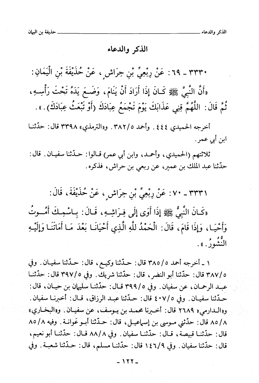 ٣٣٣٠ - عَنْ رِبْعِيِّ بْنِ حِرَاشٍ، عَنْ حُذَيْفَةَ بْنِ الْيَمَانِ؛