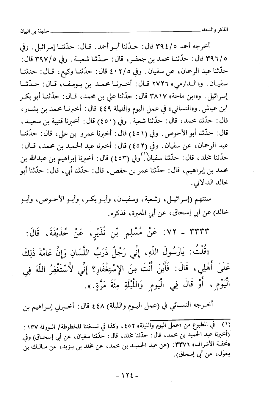 ٣٣٣٣ - عَنْ مُسْلِمِ بْنِ نُذَيْرٍ، عَنْ حُذَيْفَةَ، قَالَ: