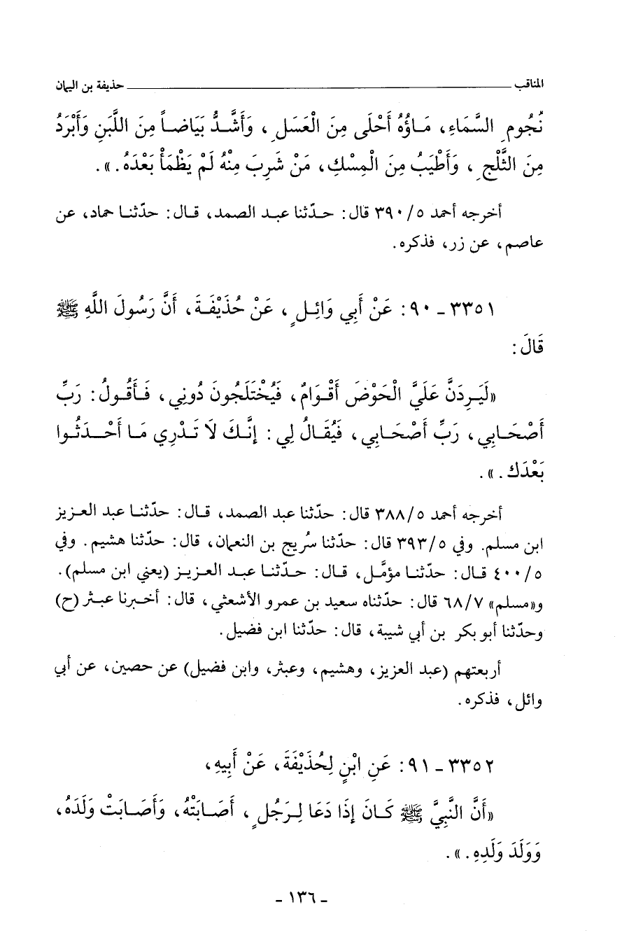 ٣٣٥١ - عَنْ أَبِي وَائِلٍ، عَنْ حُذَيْفَةَ، أَنَّ رَسُولَ اللهِ صلى الله عليه وسلم قَالَ: