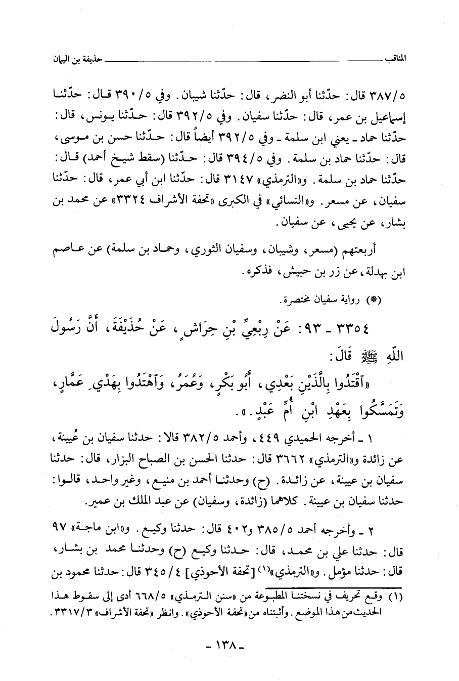 ٣٣٥٤ - عَنْ رِبْعِيِّ بْنِ حِرَاشٍ، عَنْ حُذَيْفَةَ، قَالَ: