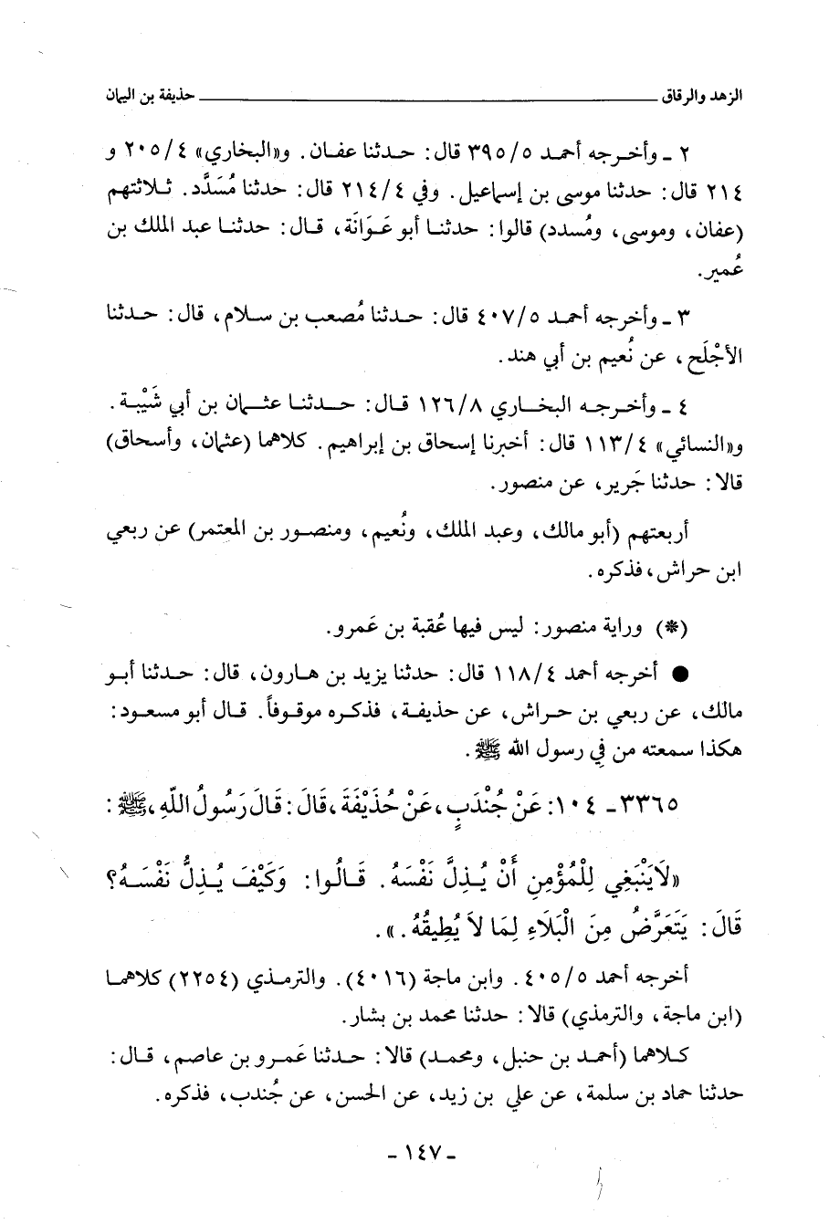 كلاهما (عُثْمان، وإِسْحَاق) قالا: حدَّثنا جَرِير، عن مَنْصُور، عن رِبْعِيٍّ، عَنْ حُذَيْفَةَ، عَنِ النَّبِيِّ صلى الله عليه وسلم، قَالَ: