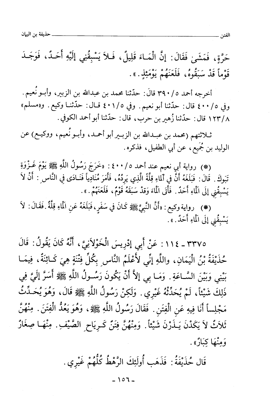 ٣٣٧٥ - عَنْ أَبِي إِدْرِيسَ الْخَوْلَانِيِّ , أَنَّهُ كَانَ يَقُولُ: قَالَ حُذَيْفَةُ بْنُ الْيَمَانِ: وَاللهِ إِنِّي لأَعْلَمُ النَّاسِ بِكُلِّ فِتْنَةٍ هِي كَائِنَةٌ , فِيمَا بَيْنِي وَبَيْنَ السَّاعَةِ , وَمَا بِي إِلَاّ أَنْ يَكُونَ رَسُولُ اللهِ صلى الله عليه وسلم أَسَرَّ إِلَيَّ فِي ذَلِكَ شَيْئًا , لَمْ يُحَدِّثْهُ غَيْرِي , وَلَكِنْ رَسُولُ اللهِ صلى الله عليه وسلم قَالَ , وَهُوَ يُحَدِّثُ مَجْلِسًا , أَنَا فِيهِ , عَنِ الْفِتَنِ , فَقَالَ رَسُولُ اللهِ صلى الله عليه وسلم , وَهُوَ يَعُدُّ الْفِتَنَ: