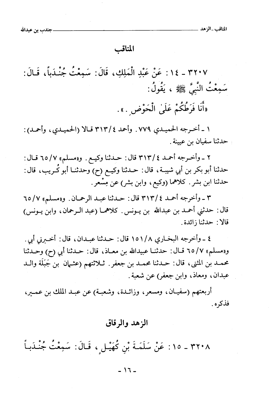 ٣٢٠٧ - عَنْ عَبْدِ الْمَلِكِ بْنِ عُمَيْرٍ، قَالَ: سَمِعْتُ جُنْدَُبًا قَالَ: سَمِعْتُ النَّبِيَّ صلى الله عليه وسلم يَقُولُ: