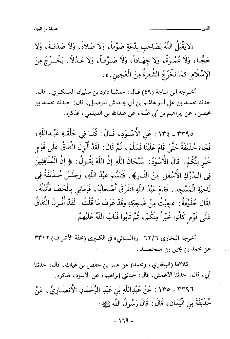 لَا يَقْبَلُ اللَّهُ لِصَاحِبِ بِدْعَةٍ صَوْمًا، وَلَا صَلَاةً، وَلَا صَدَقَةً، وَلَا حَجًّا، وَلَا عُمْرَةً، وَلَا جِهَادًا، وَلَا صَرْفًا، وَلَا عَدْلاً، يَخْرُجُ مِنَ الإِسْلَامِ، كَمَا تَخْرُجُ الشَّعَْرَةُ مِنَ الْعَجِينِ.