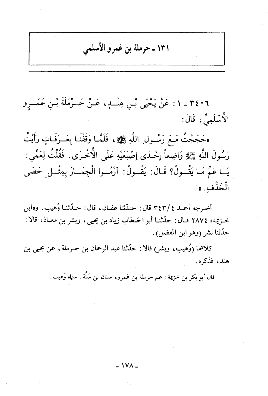 ١٣١ - حَرْمَلَةُ بْنُ عَمْرٍو الأَسْلَمِيُّ