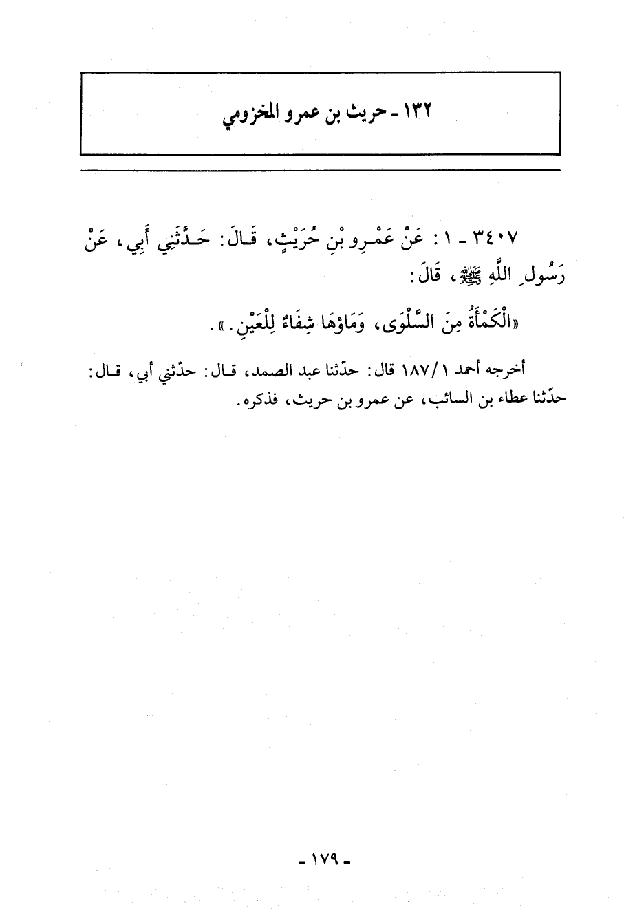 الْكَمْأَةُ مِنَ السَّلْوَى، وَمَاؤُهَا شِفَاءٌ لِلْعَيْنِ.