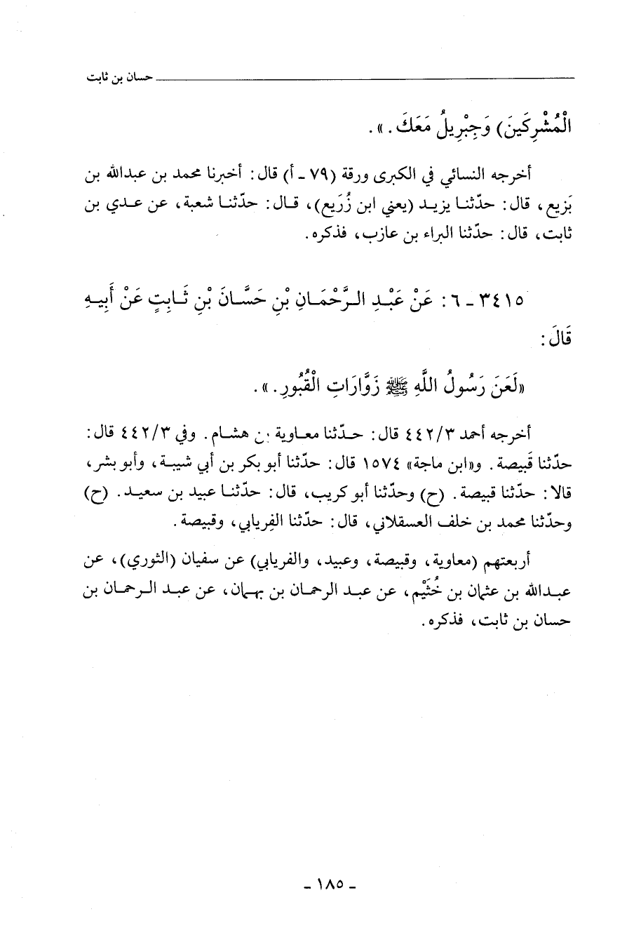 ٣٤١٥ - عَنْ عَبْدِ الرَّحْمَانِ بْنِ حَسَّانَ بْنِ ثَابِتٍ، عَنْ أَبِيهِ، قَالَ: