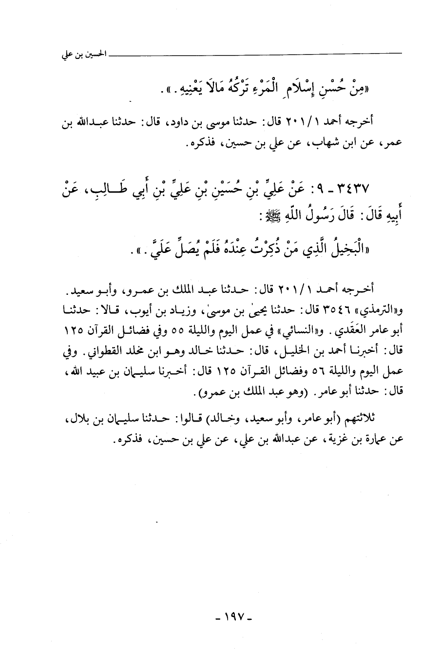 ٣٤٣٧ - عَنْ عَلِيِّ بْنِ حُسَيْنِ بْنِ عَلِيِّ بْنِ أَبِي طَالِبٍ، عَنْ أَبِيهِ، قَالَ: قَالَ رَسُولُ اللهِ صلى الله عليه وسلم: