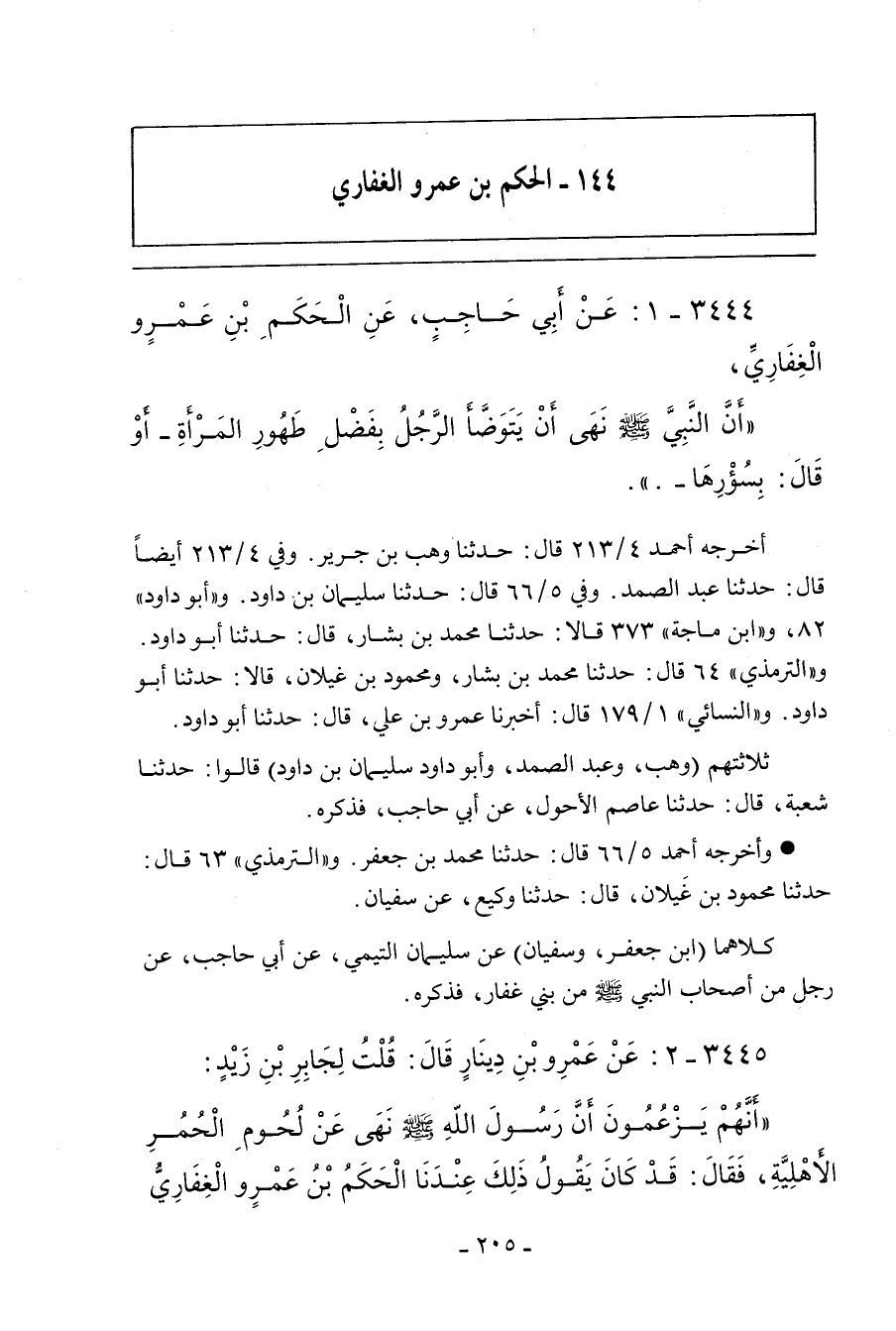 ٣٤٤٤ - عَنْ أَبِي حَاجِبٍ، عَنِ الْحَكَمِ بْنِ عَمْرٍو الْغِفَارِيِّ؛