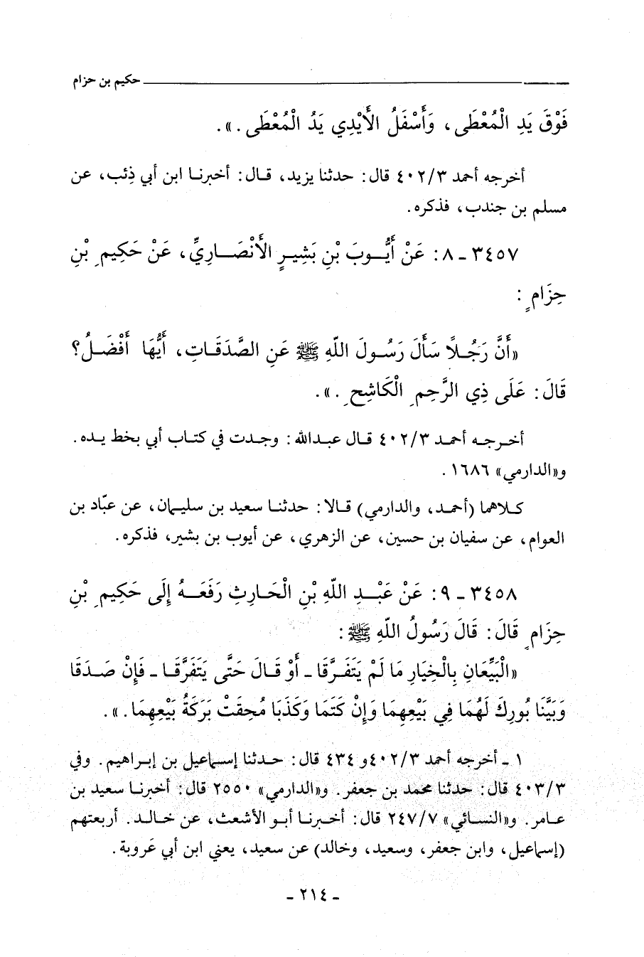 ٣٤٥٨ - عَنْ عَبْدِ اللهِ بْنِ الْحَارِثِ بْنِ نَوْفَلٍ، رَفَعَهُ إِلَى حَكِيمِ بْنِ حِزَامٍ، قَالَ: قَالَ رَسُولُ اللهِ صلى الله عليه وسلم: