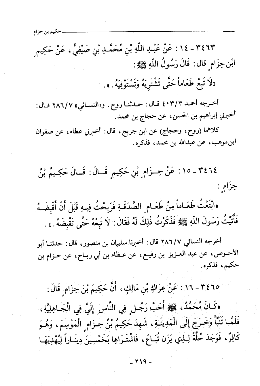 ٣٤٦٣ - عَنْ عَبْدِ اللهِ بْنِ مُحَمَّدِ بْنِ صَيْفِيٍّ، عَنْ حَكِيمِ بْنِ حِزَامٍ، قَالَ: