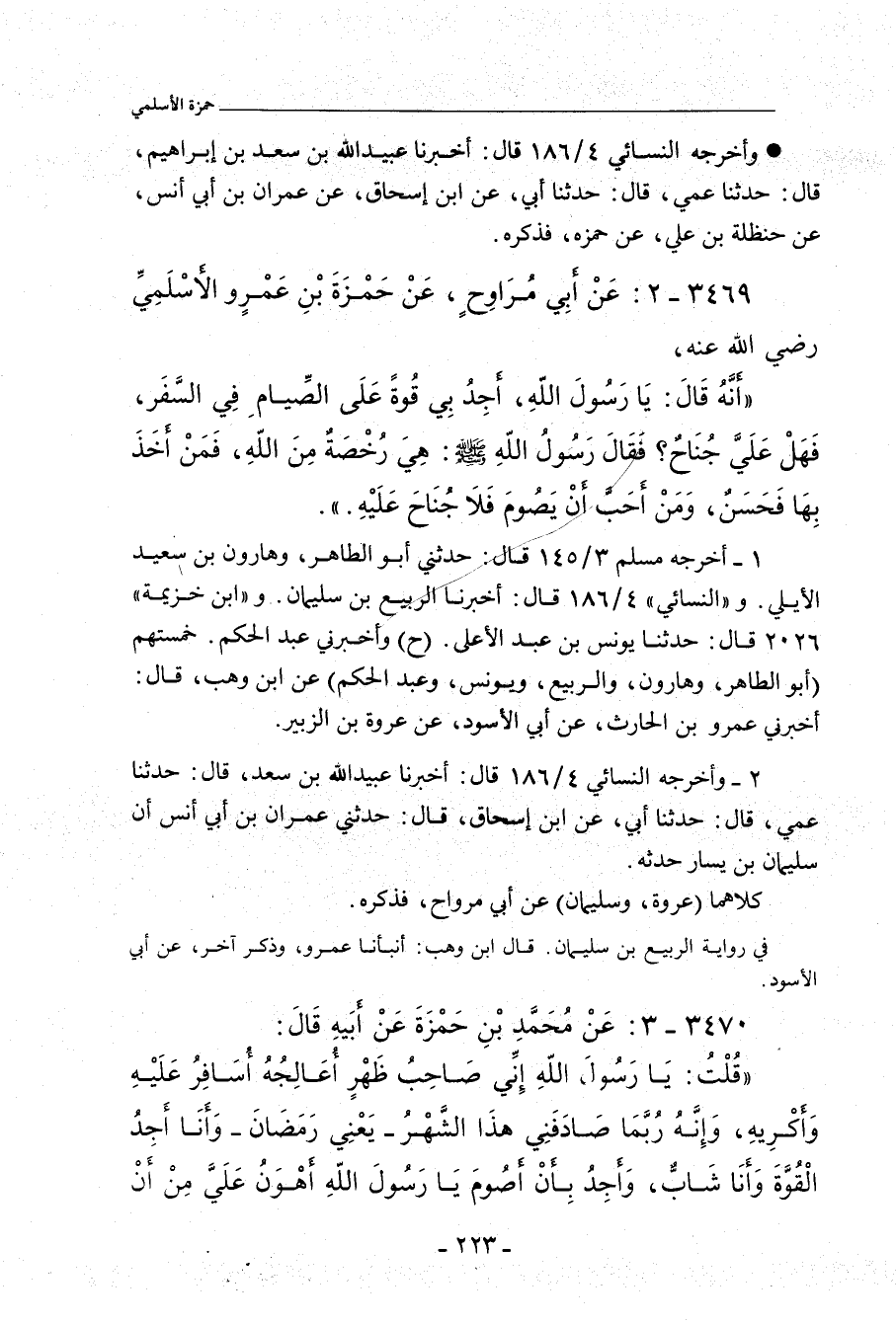٣٤٦٩ - عَنْ أَبِي مُرَاوِحٍ، عَنْ حَمْزَةَ بْنِ عَمْرٍو الأَسْلَمِيِّ؛