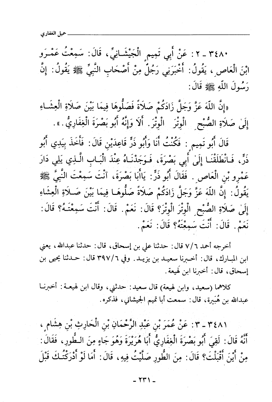 ٣٤٨٠ - عَنْ أَبِي تَمِيمٍ الْجَيْشَانِيِّ، قَالَ: سَمِعْتُ عَمْرَو بْنَ الْعَاصِ يَقُولُ: أَخْبَرَنِي رَجُلٌ مِنْ أَصْحَابِ النَّبِيِّ صلى الله عليه وسلم يَقُولُ: إِنَّ رَسُولَ اللهِ صلى الله عليه وسلم قَالَ: