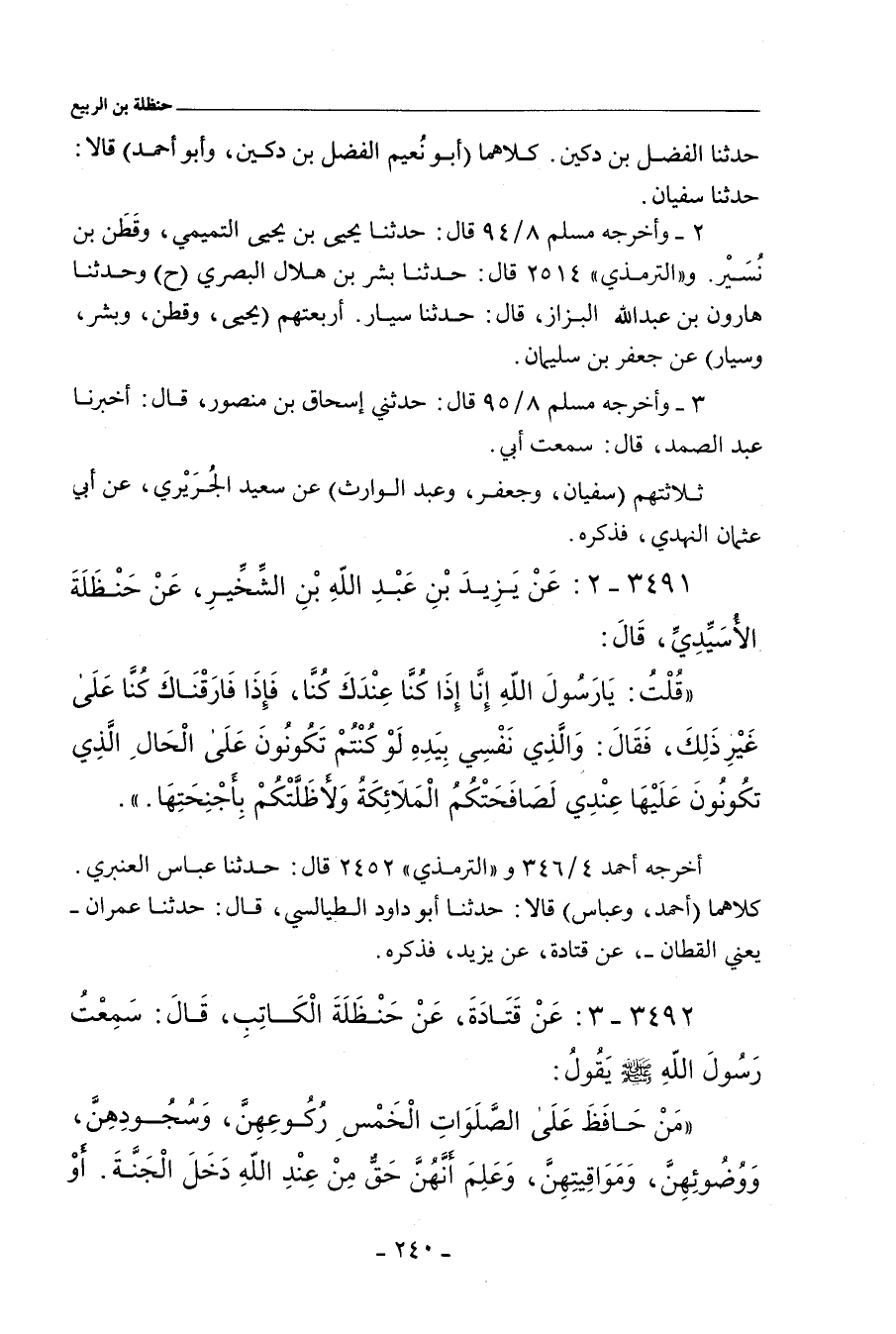 ٣٤٩١ - عَنْ يَزِيدَ بْنِ عَبْدِ اللهِ بْنِ الشِّخِّيرِ، عَنْ حَنْظَلَةَ الأُسَيِّدِيِّ، قَالَ: