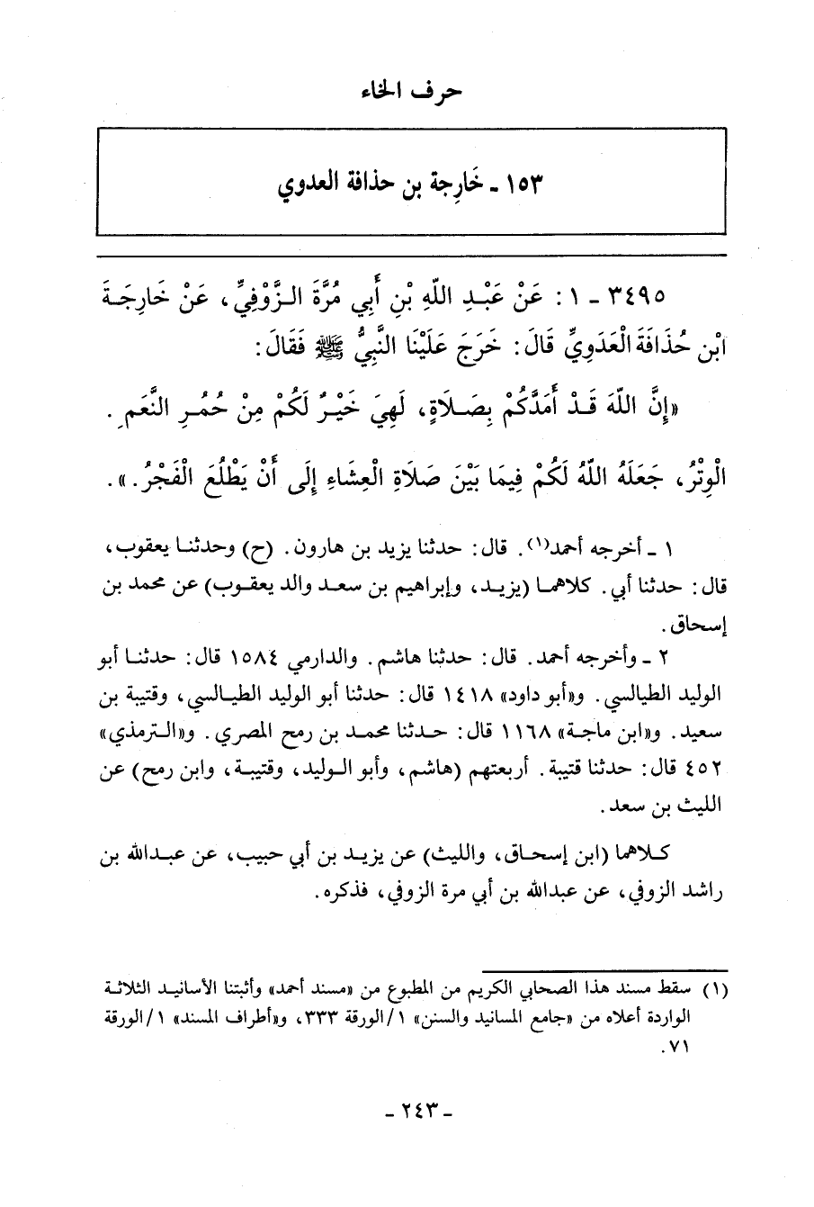 ١٥٣ - خَارِجَةُ بْنُ حُذَافَةَ الْعَدَوِيُّ