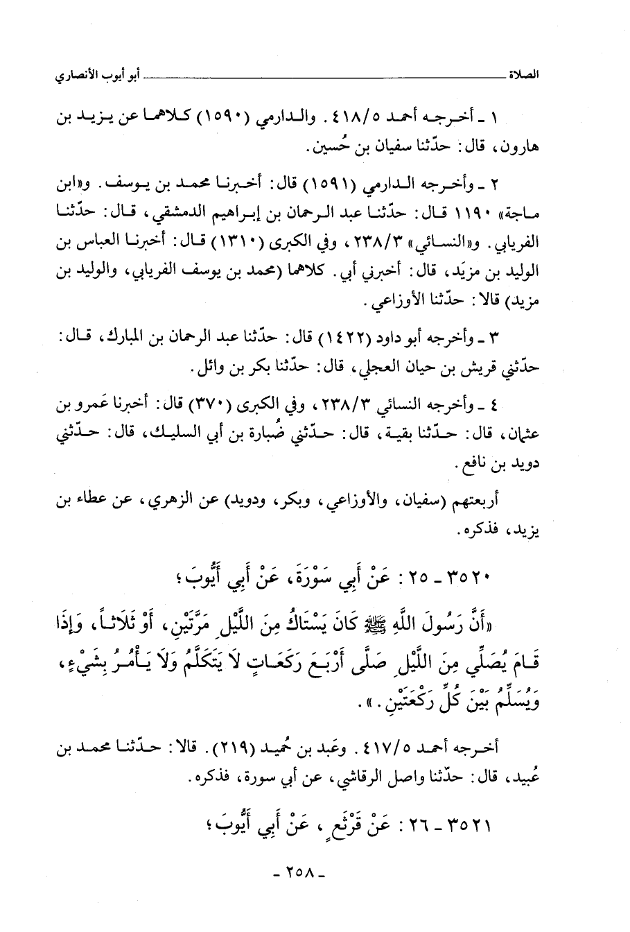 أخرجه أحمد ٥/ ٤١٨ (٢٣٩٤١) قال: حدَّثنا يَزِيد، حدَّثنا سُفْيان بن حُسَيْن. و"الدارِمِي" ١٥٨٢ قال: أخبرنا يَزِيد بن هارون، حدَّثنا سُفْيان بن حُسَيْن. وفي (١٥٨٣) قال: أخبرنا مُحَمد بن يُوسُف، عن الأَوْزَاعِي. و"أبو داود" ١٤٢٢ قال: حدَّثنا عَبْد الرَّحْمان بن المُبَارك، حدَّثني قُرَيْش بن حَيَّان العِجْلِي، حدَّثنا بَكْر بن وائل. و"ابن ماجة" ١١٩٠ قال: حدَّثنا عَبْد الرَّحْمان بن إبراهيم الدِّمَشْقِي، حدَّثنا الفِرْيَابِي، عن الأَوْزَاعِي. و"النَّسائي" ٣/ ٢٣٨، وفي "الكبرى" ٤٤٢ قال: أخبرنا عَمْرو بن عُثْمَان، قال: حدَّثنا بَقِيَّة، قال: حدَّثني ضُبَارَة بن أَبِي السَّلِيل، قال: حدَّثني دُوَيْد بن نافع. وفي ٣/ ٢٣٨، وفي "الكبرى" ١٤٠٥ قال: أخبرنا العَبَّاس بن الوَلِيد بن مَزْيَد، قال: أخبرني أَبِي، قال: حدَّثنا الأَوْزَاعِي.