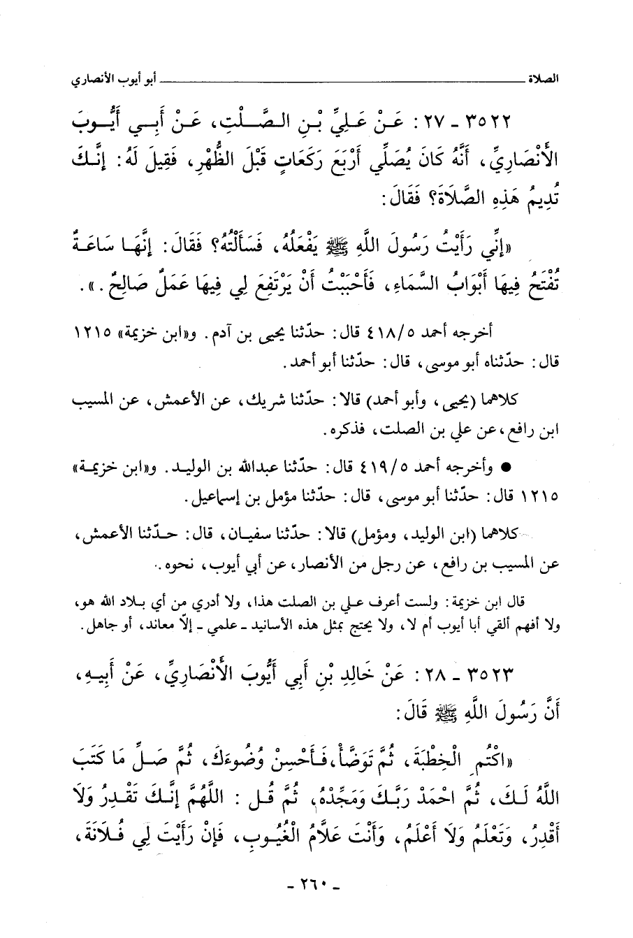 ٣٥٢٢ - عَنْ عَلِيِّ بْنِ الصَّلْتِ، عَنْ أَبِي أَيُّوبَ الأَنْصَارِي، أَنَّهُ كَانَ يُصَلِّي أَرْبَعَ رَكَعَاتٍ قَبْلَ الظُّهْرِ، فَقِيلَ لَهُ: إِنَّكَ تُدِيمُ هَذِهِ الصَّلَاةَ؟ فَقَالَ: