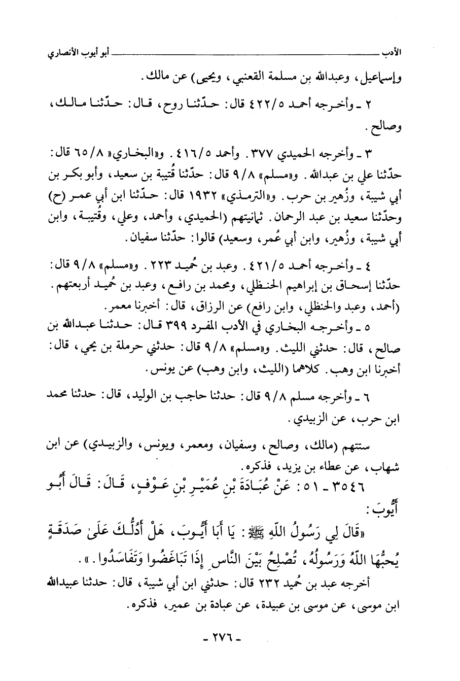 قَالَ لِي رَسُولُ اللهِ صلى الله عليه وسلم: يَا أَبَا أَيُّوب، أَلَا أَدُلُّكَ عَلَى صَدَقَةٍ يُحِبُّهَا اللهُ وَرَسُولُهُ؛ تُصْلِحُ بَيْنَ النَّاسِ، إِذَا تَبَاغَضُوا، وَتَفَاسَدُوا.
