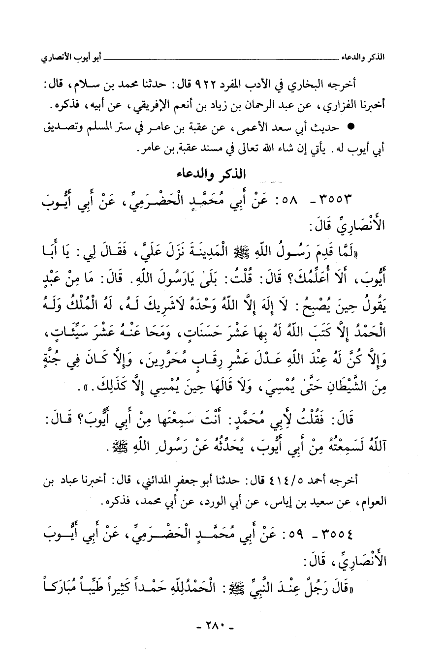 ٣٥٥٣ - عَنْ أَبِي مُحَمَّدٍ الْحَضْرَمِيِّ، عَنْ أَبِي أَيُّوبَ الأَنْصَارِيِّ، قَالَ: