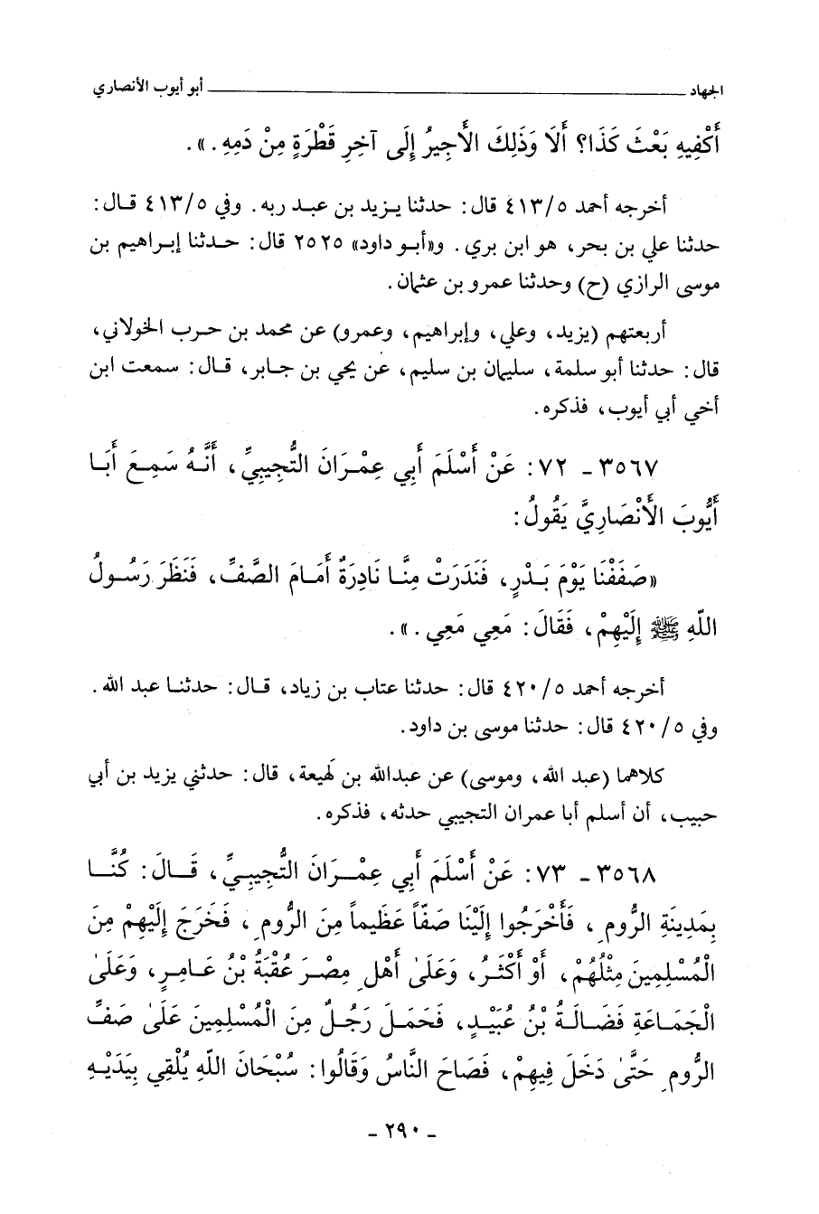 ٣٥٦٧ - عَنْ أَسْلَمَ أَبِي عِمْرَانَ التُّجِيبِيِّ، أَنَّهُ سَمِعَ أَبَا أَيُّوبَ الأَنْصَارِيِّ يَقُولُ:
