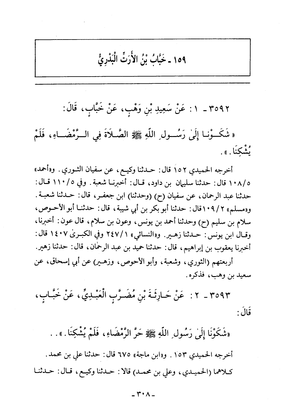 ٣٥٩٣ - عَنْ حَارِثَةَ بْنِ مُضَرِّبٍ الْعَبْدِيِّ، عَنْ خَبَّابٍ، قَالَ: