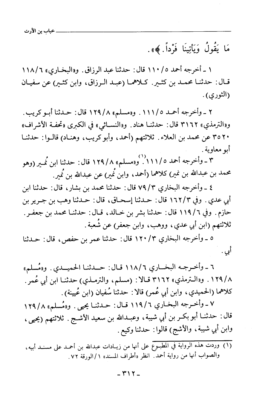 أخرجه أحمد ٥/ ١١٠ (٢١٣٨٢) قال: حدَّثنا عَبْد الرَّزَّاق، أنبأنا سُفْيان. وفي ٥/ ١١١ (٢١٣٩٠) قال: حدَّثنا أبو مُعَاوِيَة. وفي (٢١٣٩١) قال: حدَّثنا عَبْد اللهِ بن نُمَيْر. و"البُخَارِي" ٣/ ٧٩ (٢٠٩١) قال: حدَّثنا مُحَمد بن بَشَّار، حدَّثنا ابن أَبِي عَدِي، عن شُعْبة. وفي ٣/ ١٢٠ (٢٢٧٥) قال: حدَّثنا عُمَر بن حَفْص، حدَّثنا أَبِي. وفي ٣/ ١٦٢ (٢٤٢٥) قال: حدَّثنا إِسْحَاق، حدَّثنا وَهْب بن جَرِير بن حازم، أخبرنا شُعْبة. وفي ٦/ ١١٨ (٤٧٣٢) قال: حدَّثنا الحُمَيْدِي، حدَّثنا سُفْيان. وفي (٤٧٣٣) قال: حدَّثنا مُحَمد بن كَثِير، أخبرنا سُفْيان. قال البُخَارِي: لم يقل الأَشْجَعِي عن سُفْيان: سَيْفًا وَلَا مَوْثِقًا. وفي ٦/ ١١٩ (٤٧٣٤) قال: حدَّثنا بِشْر بن خالد، حدَّثنا مُحَمد بن جَعْفَر، عن شُعْبة. وفى (٤٧٣٥) قال: حدَّثنا يَحيى، حدَّثنا وَكِيع. و"مسلم" ٨/ ١٢٩ (٧١٦٤) قال: حدَّثنا أبو بَكْر بن أَبِي شَيْبَة، وعَبْد اللهِ بن سَعِيد الأَشَجّ، قالا: حدَّثنا وَكِيع.