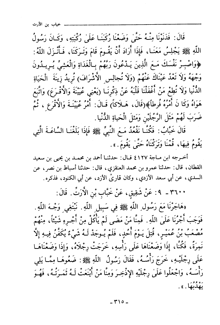 ٣٦٠٠ - عَنْ شَقِيقٍ، عَنْ خَبَّابِ بْنِ الأَرَتِّ، قَالَ:
