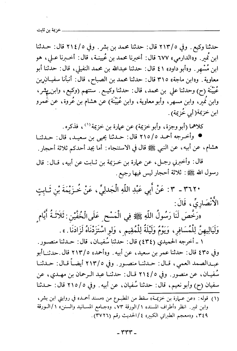 كلاهما (وَكِيع، وسُفْيان) عن هِشَام بن عُرْوَة، عن أَبِي خُزَيْمَة، عن عُمَارَة بن خُزَيْمَة، عن خُزَيْمَة بن ثابت، فذكره.