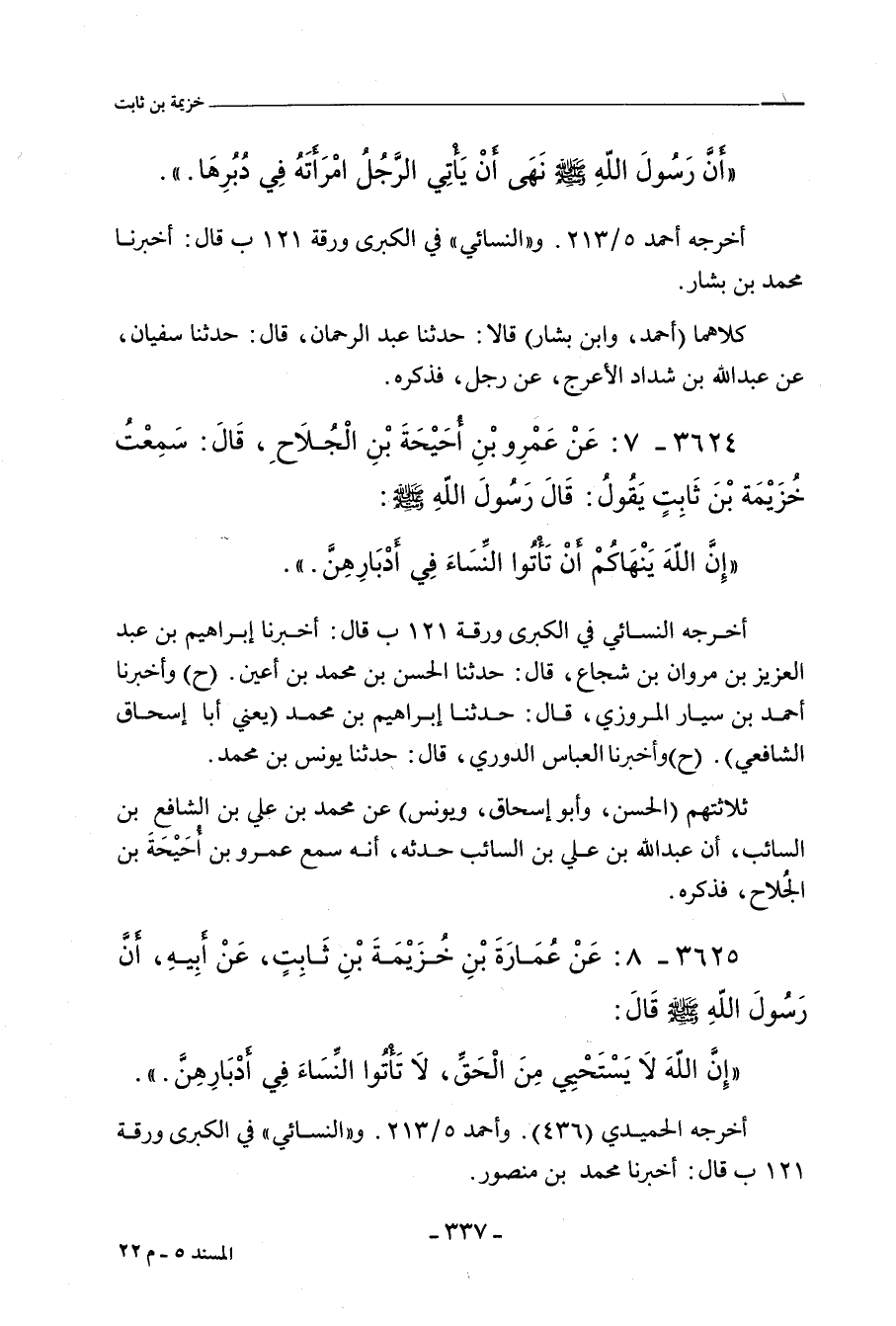 إِنَّ اللهَ لَا يَسْتَحْيِي مِنَ الْحَقِّ، لَا تَأْتُوا النِّسَاءَ فِي أَدْبَارِهِنَّ.