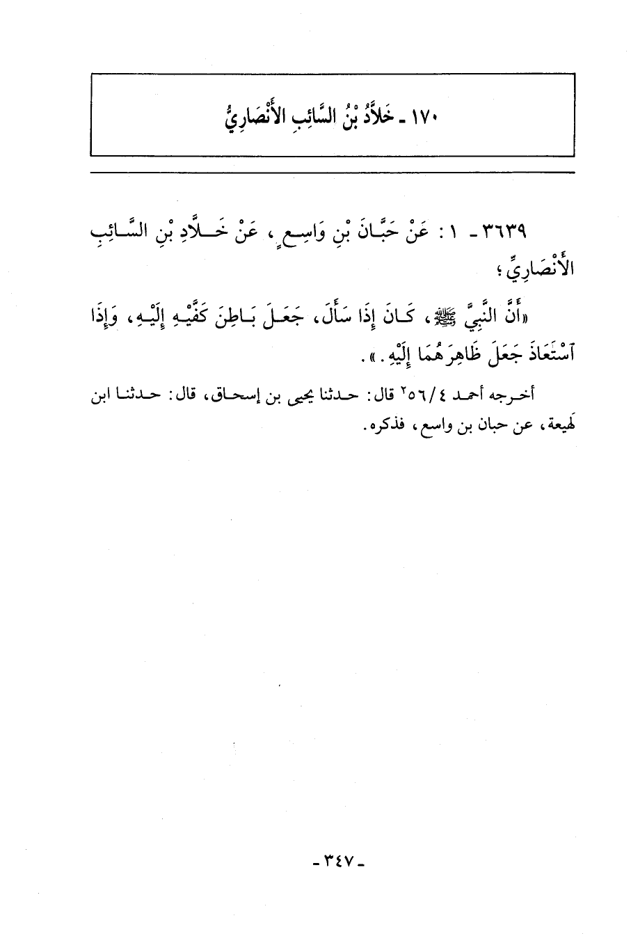 ٣٦٣٩ - عَنْ حَبَّانَ بْنِ وَاسِعٍ، عَنْ خَلَاّدِ بْنِ السَّائِب الأَنْصَارِيِّ؛