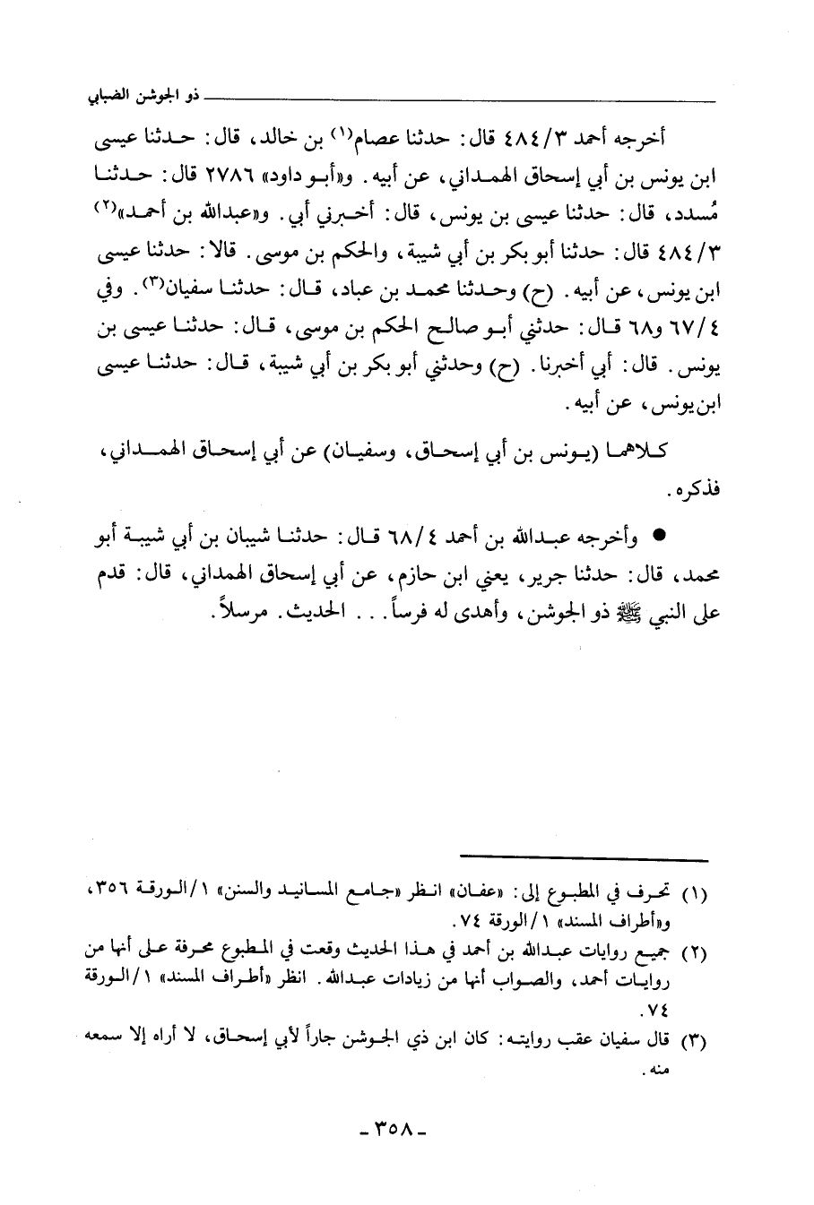 أربعتهم (عِصَام، ومُسَدَّد، والحَكَم , وابن أَبِي شَيْبَة) عن عِيسَى بن يُونُس بن أَبِي إِسْحَاق الهَمْدَانِي، عن أبيه، عن أَبِي إِسْحَاق، فذكره.