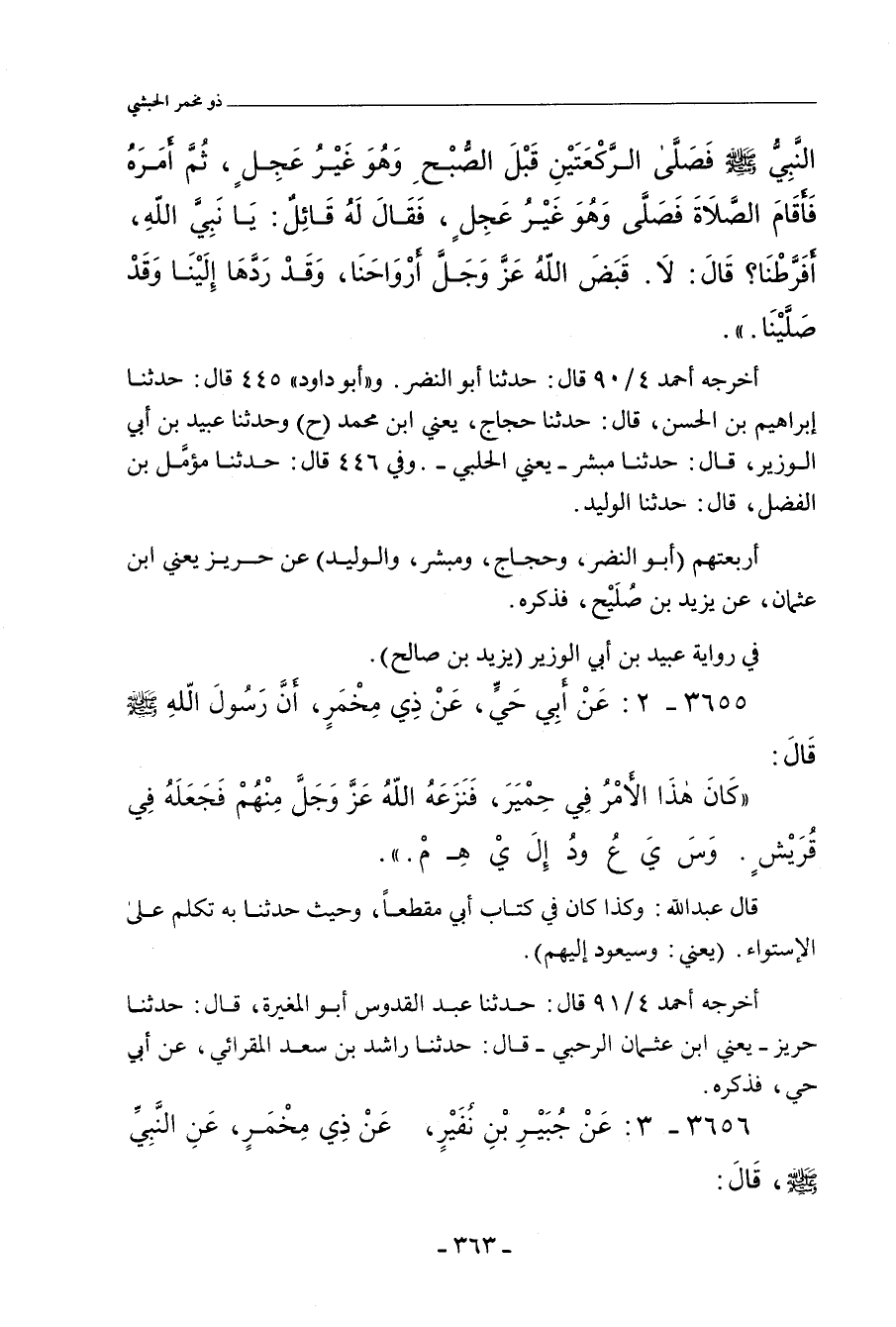 ٣٦٥٥ - عَنْ أَبِي حَيٍّ، عَنْ ذِي مِخْمَرٍ، أَنَّ رَسُولَ اللهِ صلى الله عليه وسلم قَالَ: