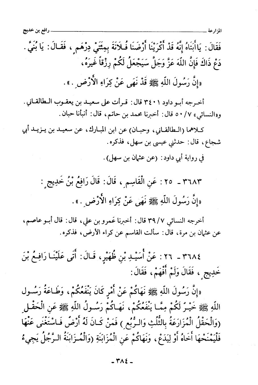 ٣٦٨٤ - عَنْ أُسَيْدِ بْنِ ظُهَيْرٍ، قَالَ: أَتَى عَلَيْنَا رَافِعُ بْنُ خَدِيجٍ فَقَالَ - وَلَمْ أَفْهَمْ - فَقَالَ: