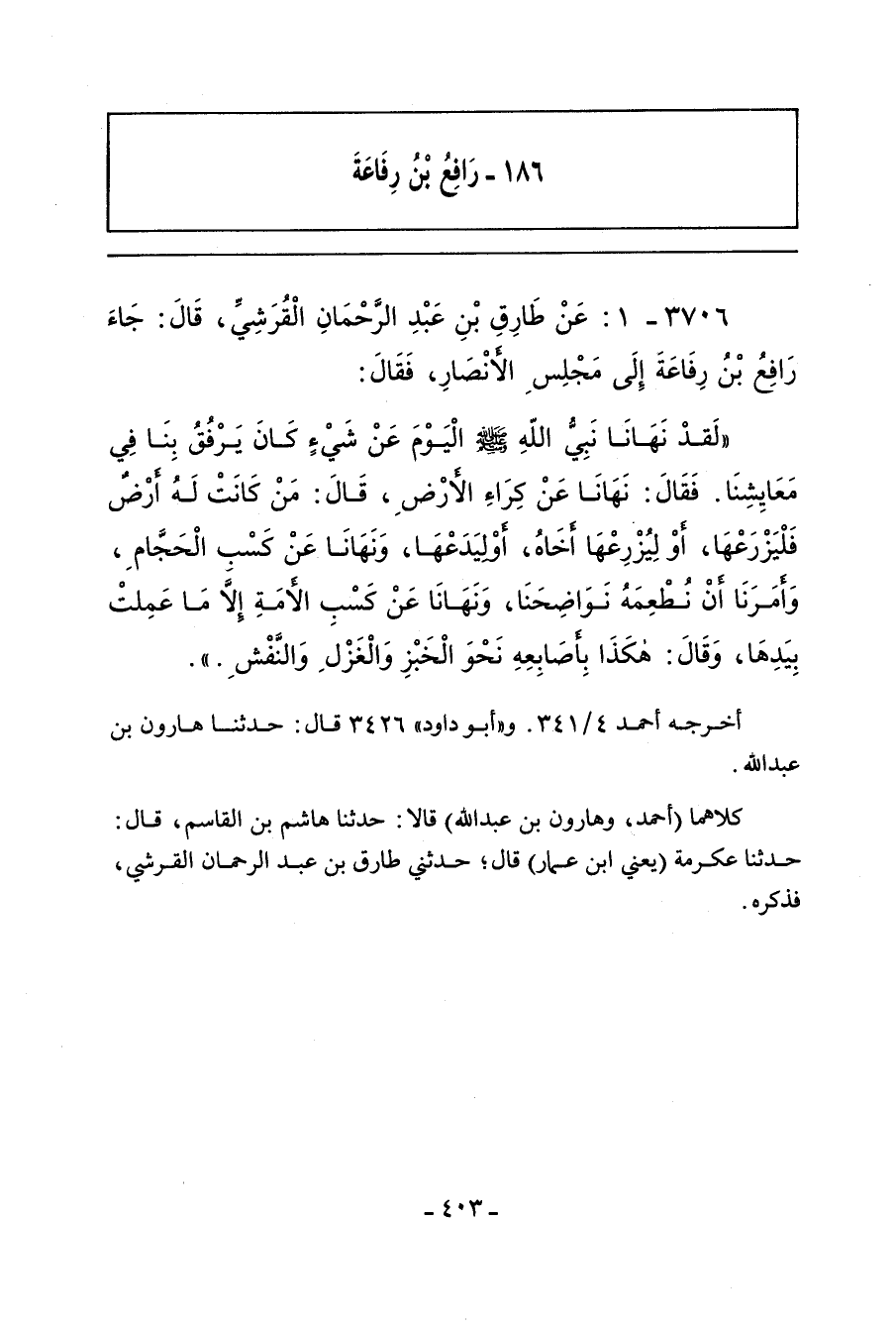 ١٨٦ - رَافِعُ بْنُ رِفَاعَةَ