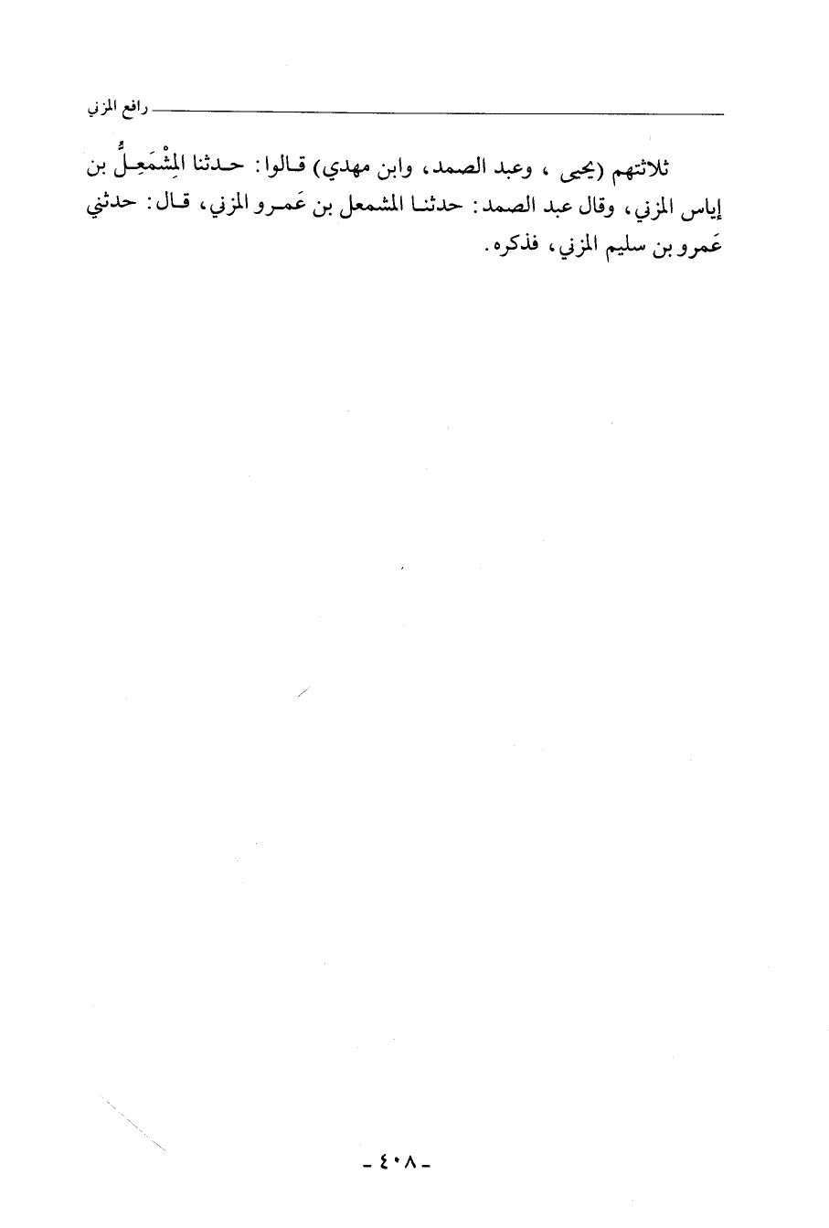 ثلاثتهم (يَحيى، وعَبْد الصَّمَد، وابن مَهْدِي) قال يَحيى، وابن مَهْدِي: حدَّثنا المُشْمَعِلُّ بن إِيَاس المُزَنِي، وقال عَبْد الصَّمَد: حدَّثنا المُشْمَعِلُّ بن عَمْرو المُزَنِي، قال: حدَّثني عَمْرو بن سُلَيْم المُزَنِي، فذكره.