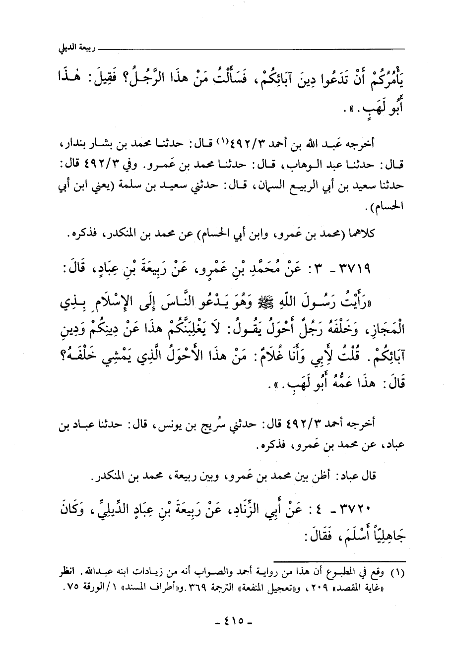 ٣٧١٩ - عَنْ مُحَمَّدِ بْنِ عَمْرٍو، عَنْ رَبِيعَةَ بْنِ عِبَادٍ، قَالَ: