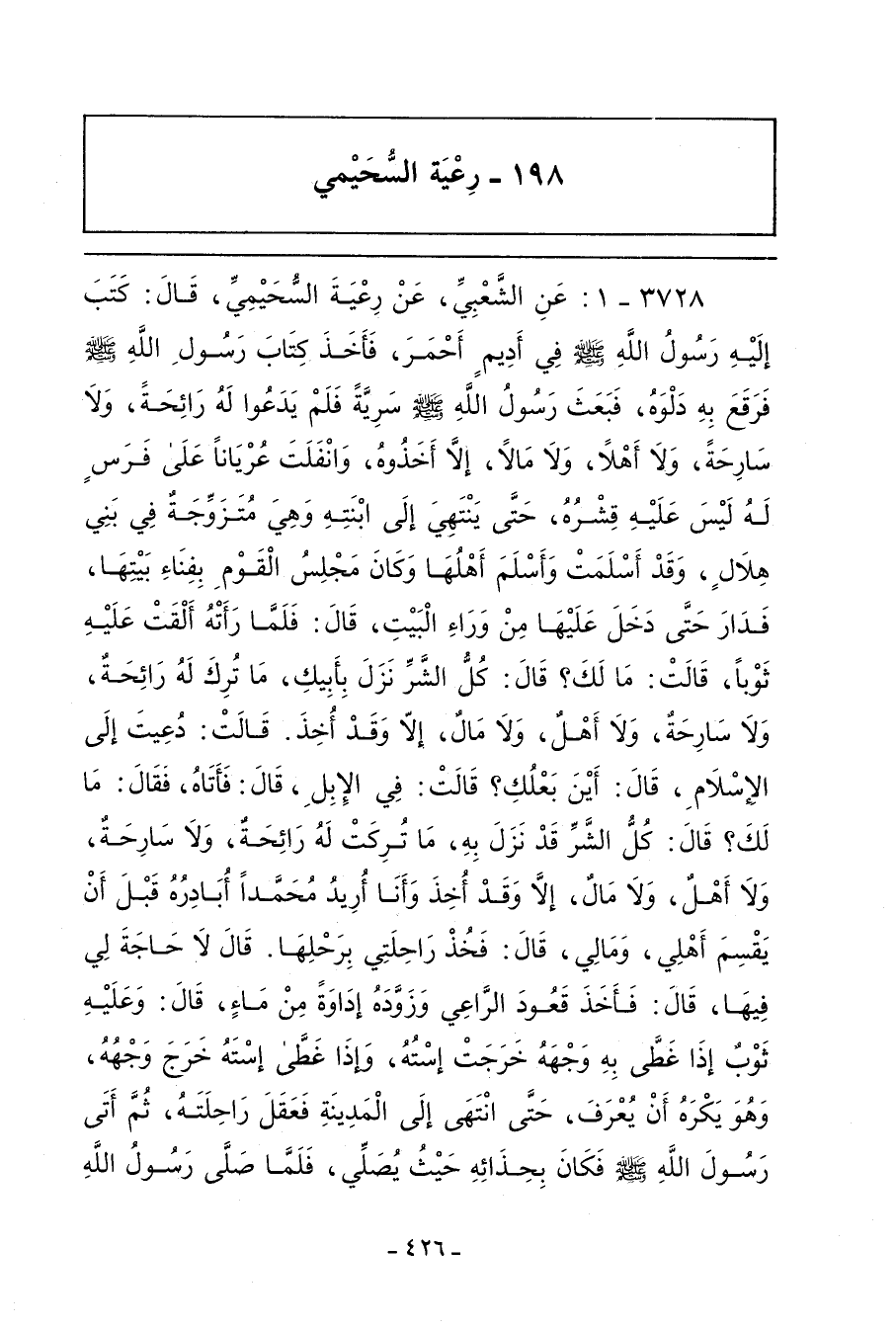 ٣٧٢٨ - عَنِ الشَّعْبِيِّ، عَنْ رِعْيَةَ السُّحَيْمِيِّ، قَالَ: