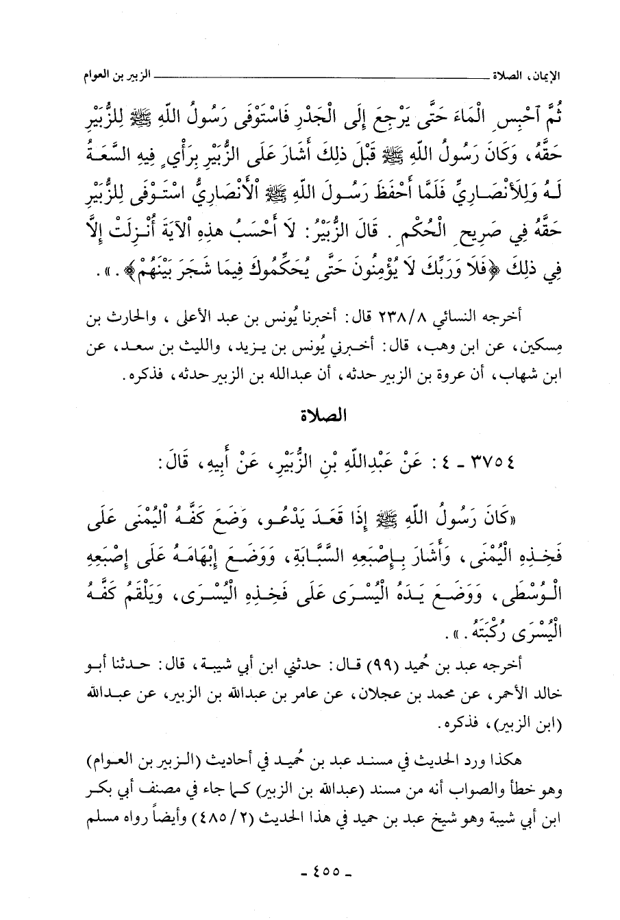 ٣٧٥٤ - عَنْ عَبْدِ اللَّهِ بْنِ الزُّبَيْرِ , عَنْ أَبِيهِ , قال: