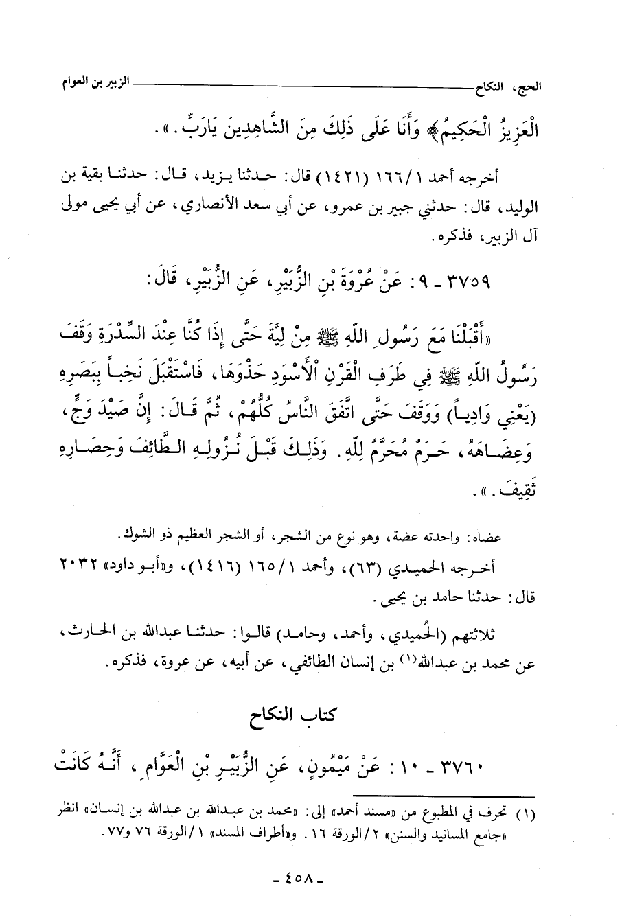 ٣٧٥٩ - عَنْ عُرْوَةَ بْنِ الزُّبَيْرِ، عَنِ الزُّبَيْرِ، قَالَ: