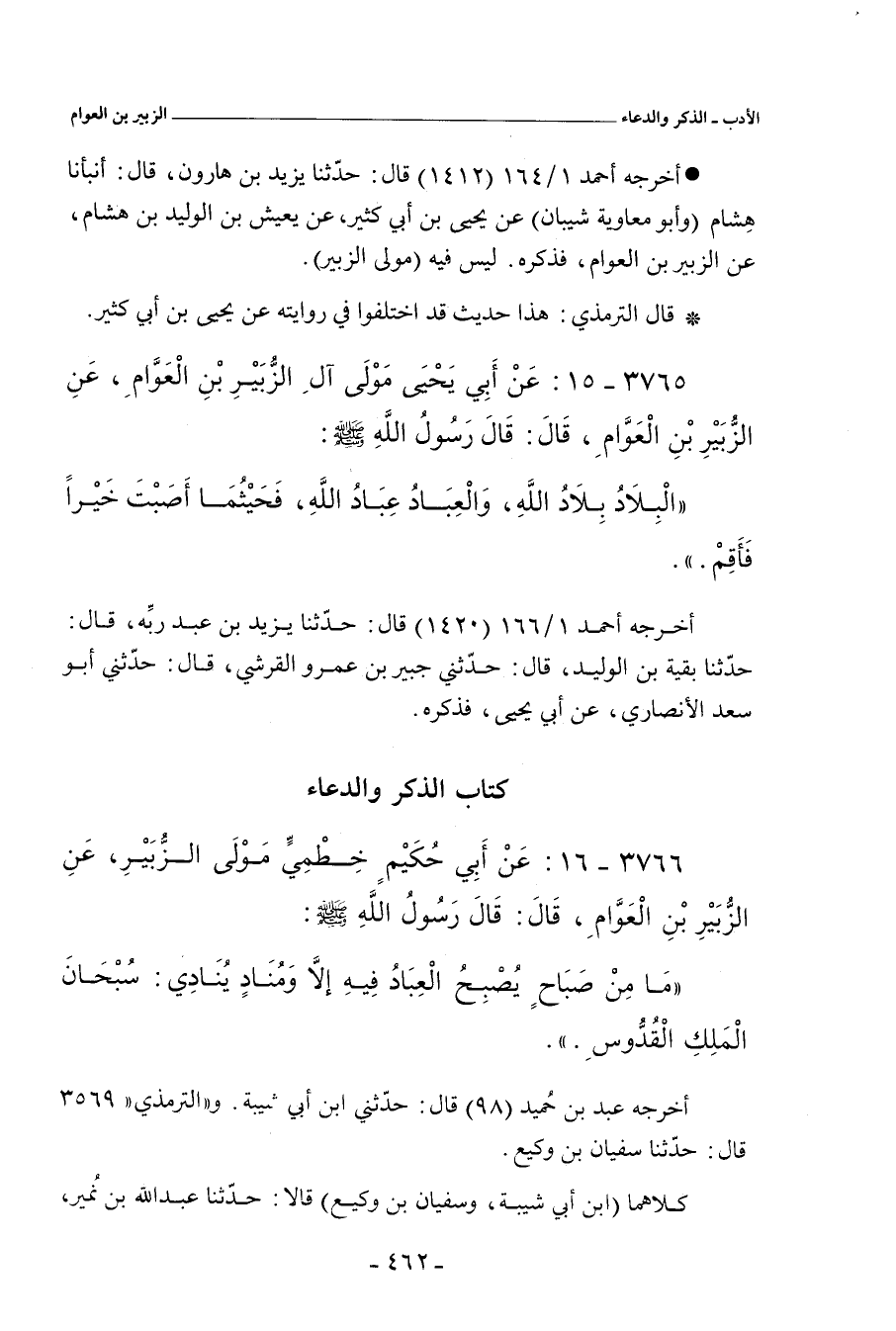 - قال أبو عِيسَى التِّرْمِذِي: هذا حديثٌ قد اختلفوا في روايته عن يَحيى بن أَبِي كَثِير، فروى بعضُهم عن يَحيى بن أَبِي كَثِير، عن يَعِيش بن الوَلِيد، عن مَوْلَى الزُّبَيْر، عن النَّبِيِّ صلى الله عليه وسلم، ولم يذكروا فيه (عن الزُّبَيْر.