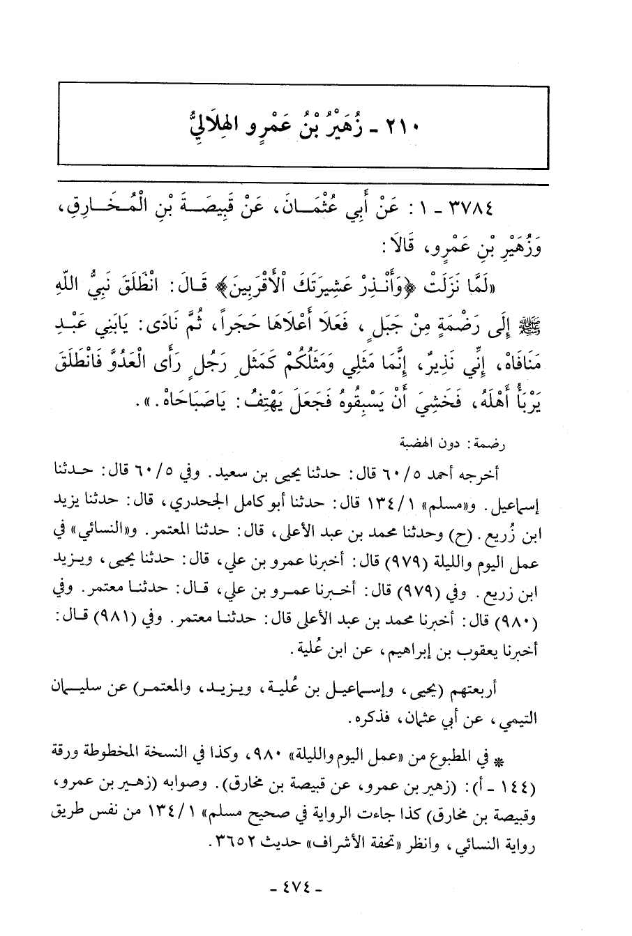 ٢١٠ - زُهَيْرُ بْنُ عَمْرٍو الْهِلَالِيُّ