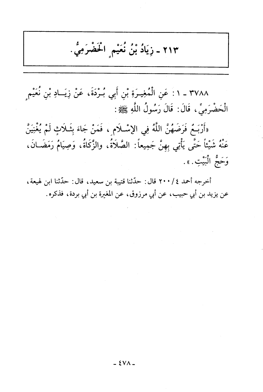 ٣٧٨٨ - عَنِ الْمُغِيرَةِ بْنِ أَبِي بُرْدَةَ، عَنْ زِيَادِ بْنِ نُعَيْمٍ الْحَضْرَمِيِّ، قَالَ: قَالَ رَسُولُ اللهِ صلى الله عليه وسلم: