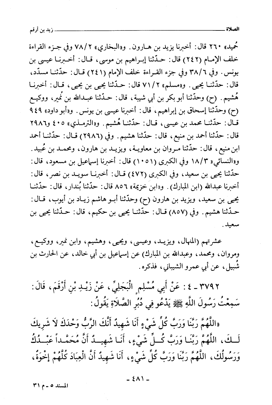 تسعتهم (يَحيى، ويَزِيد، وعِيسَى، وهُشَيْم، وابن نُمَيْر، ووَكِيع، ومَرْوَان، ومُحَمد، وعَبْد اللهِ بن المُبَارك) عن إِسْمَاعِيل بن أَبِي خالد، عن الحارث بن شُبَيْل، عن أَبِي عَمْرو الشَّيْبَانِي، فذكره.